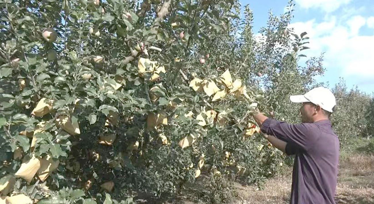 金秋蘋(píng)果迎豐收 摘袋上色啟新篇